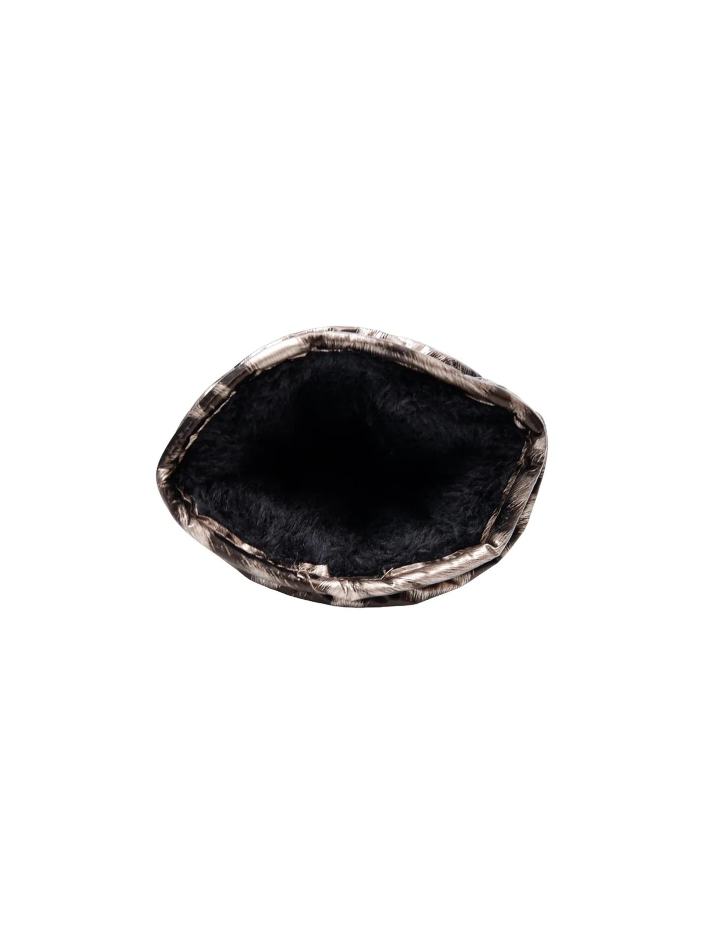 Warm and soft mittens in a cool metallic leopard print and with fluffy lining.