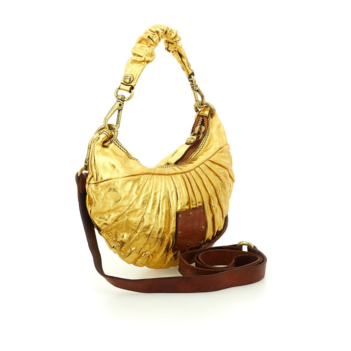 Campomaggi Luna "Croissant" Pleated Handbag Gold