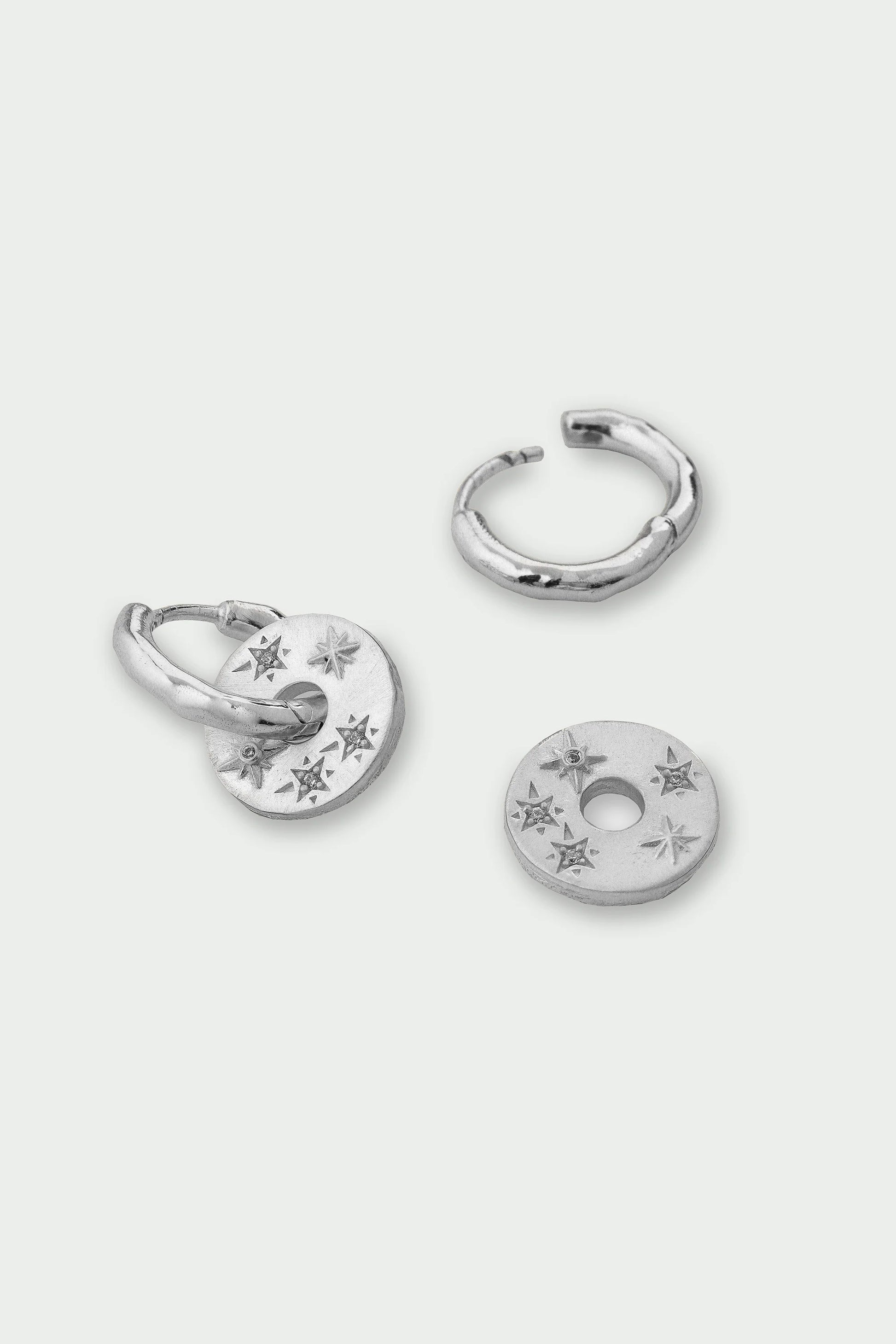 Celestial Earrings - Star Disc Drop Earrings, Gold/Silver