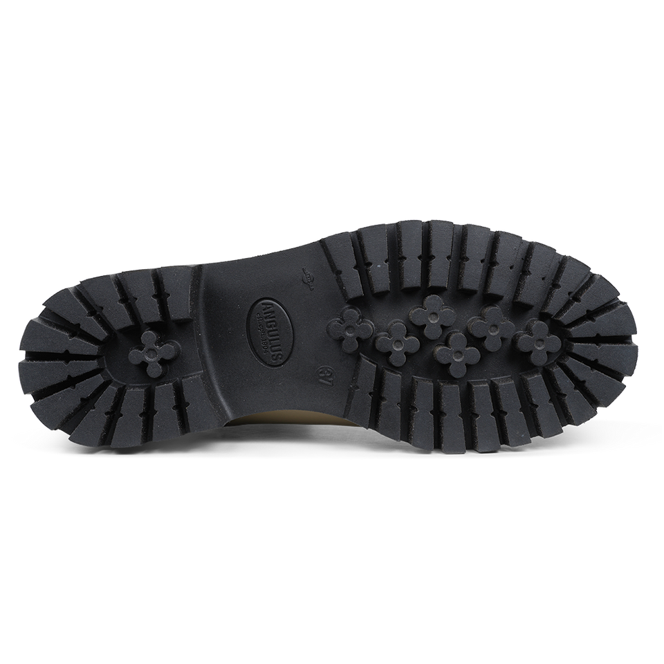 Chunky Chelsea boot with black track sole. The boot features a round toe, a close-fitting shaft with strap and black ribbing for easy on and off, flexible black rubber track sole that goes up over the toe and heel, embossed logo at the heel, padded insole, leather lining and is crafted from natural and breathable leather. Designed in Denmark and handmade with love in Portugal. The boot is true to size, but if you are between two sizes, we recommend that you take the largest size.