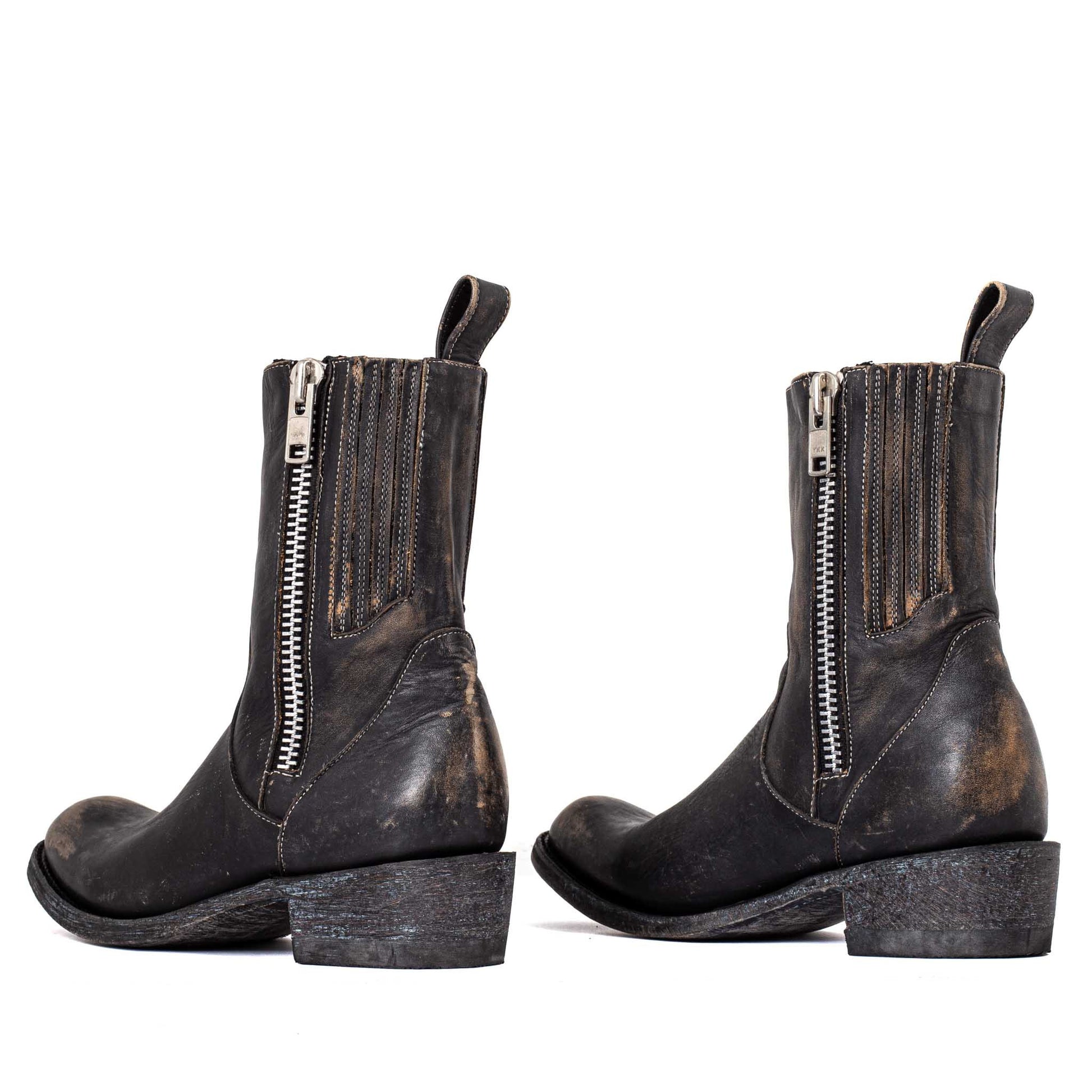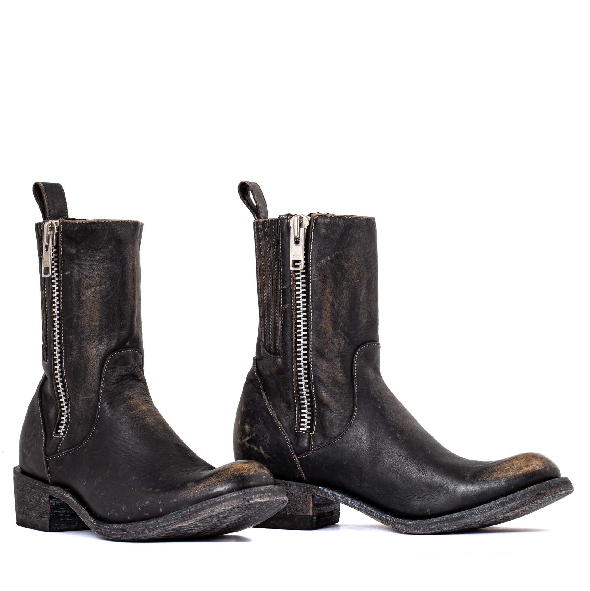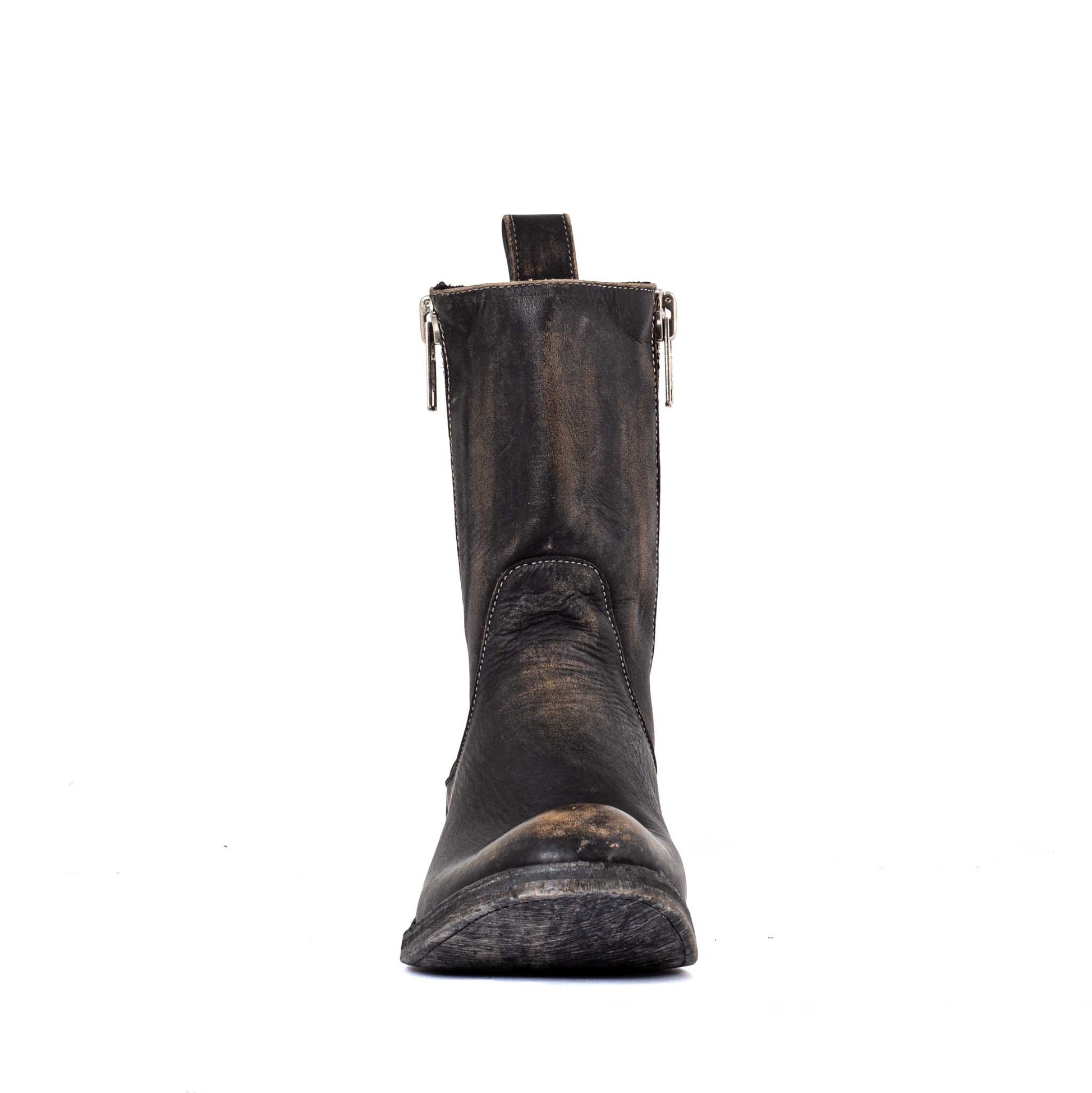 L3815 Demonia Rustic Double Zipped Boots Beige/Black