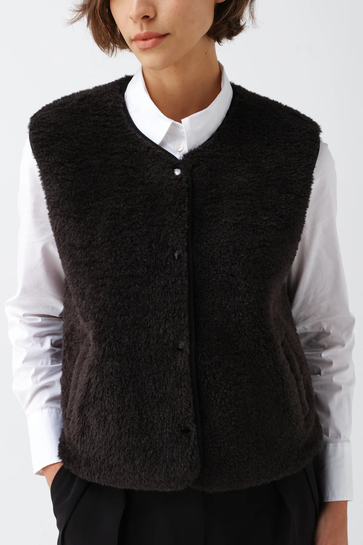 Faux Sheepskin Sport Gilet - Black/Ecru