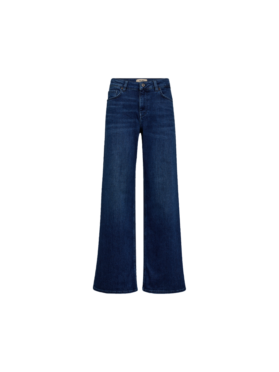 Introducing wide-legged jeans in a stylish blue wash with a high-rise fit. Finished with leather detailing at the coin pocket. Pair casually with a chunky knit or dress up with a glitter tank top and oversized blazer for a night out.
