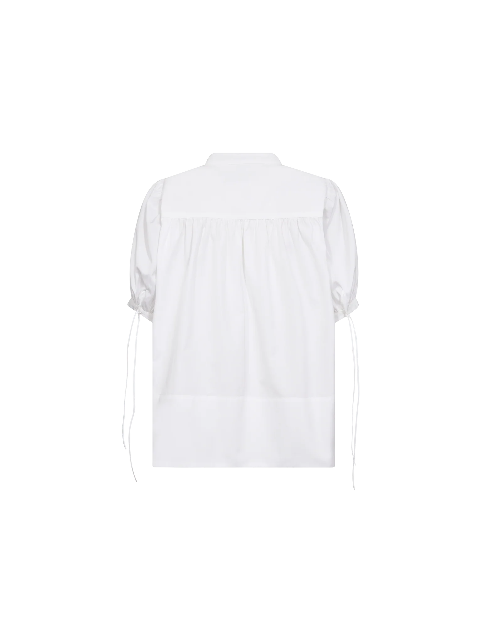 A lightweight organic cotton blouse with a contemporary twist. Designed with a band collar, short sleeves featuring adjustable drawstrings, and subtle gathering for added volume. The relaxed silhouette makes it perfect for pairing with both tailored pieces and casual denim.
