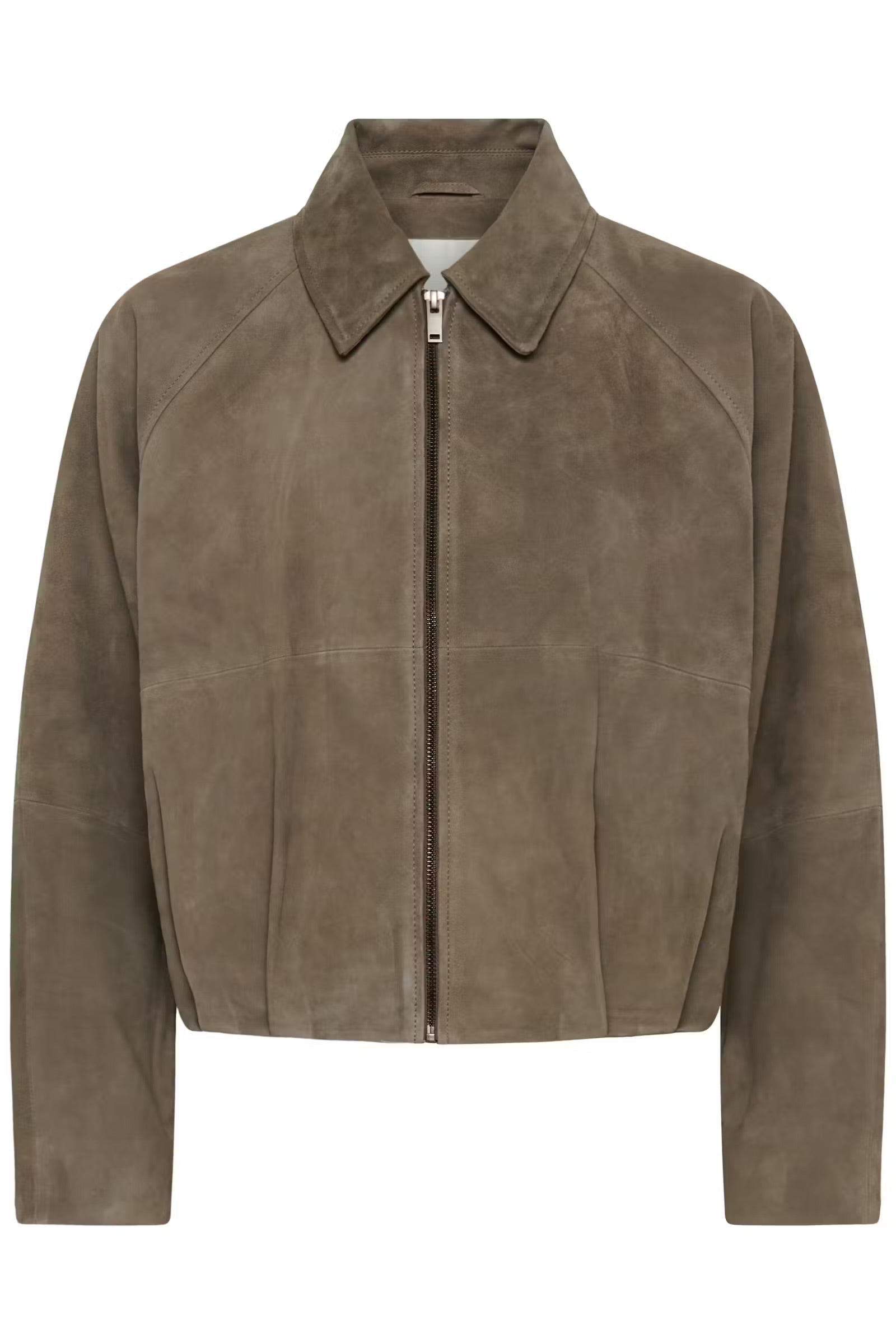 This women's jacket features a relaxed fit, structured collar, long sleeves, and a zip closure. The short length and classic silhouette offer comfort and versatility for everyday layering. Ideal for modern, casual style.