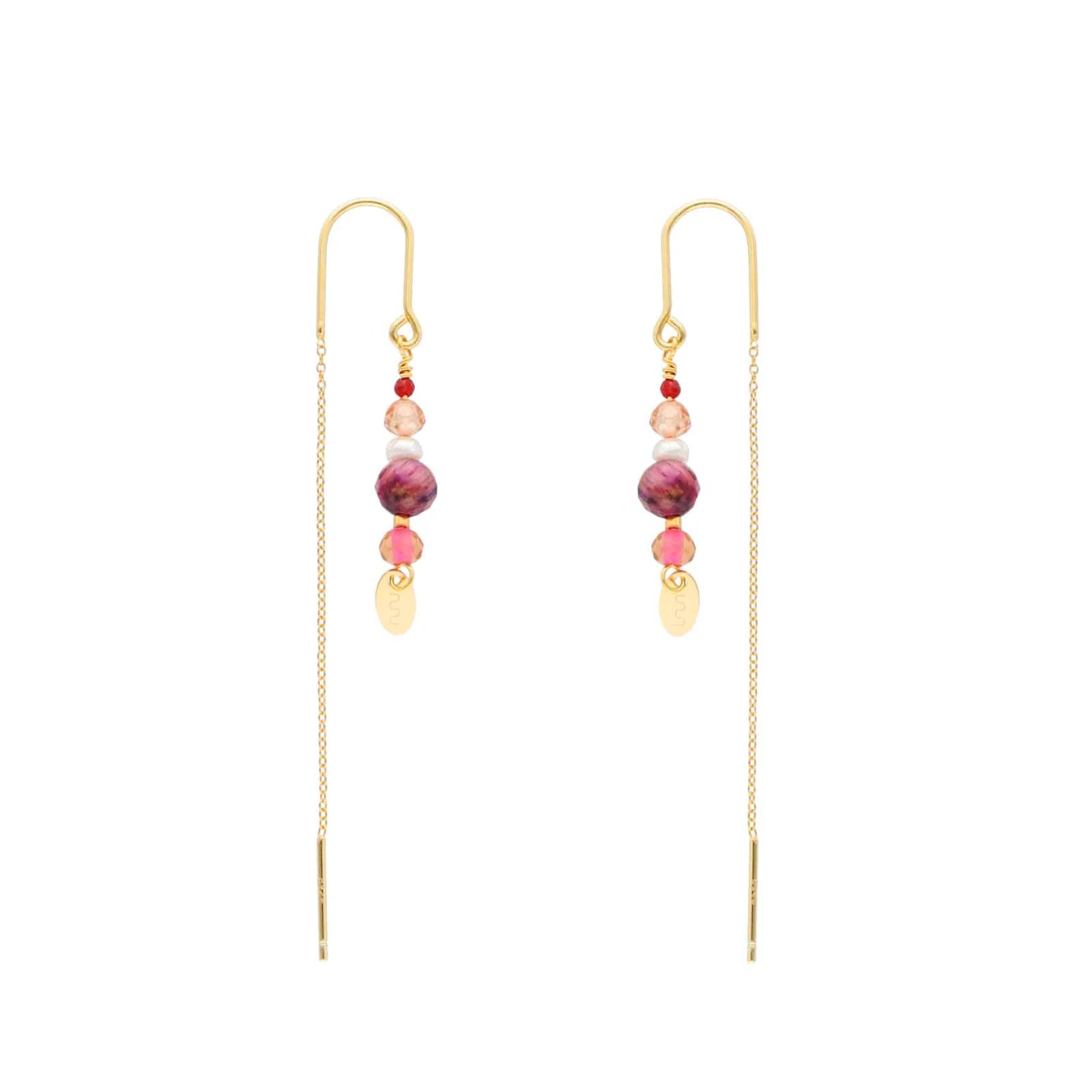 Handmade earrings in 24k Gold Plated Recycled Sterling Silver, Fresh water pearls, Semi precious stone, Zirconia.